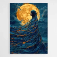 Tableau Hijab et lune, douceur nocturne et silhouette contemplative