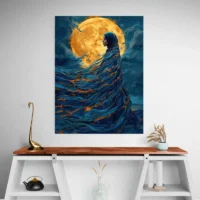 Accrochez cette toile sur un mur sobre pour qu’elle respire. Associez-la à des cadres aux teintes chaudes ou neutres et à des textiles doux. Pour prolonger l’univers, découvrez aussi nos propositions orientales et ethniques comme tableaux orientaux ou tableaux ethniques.
