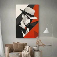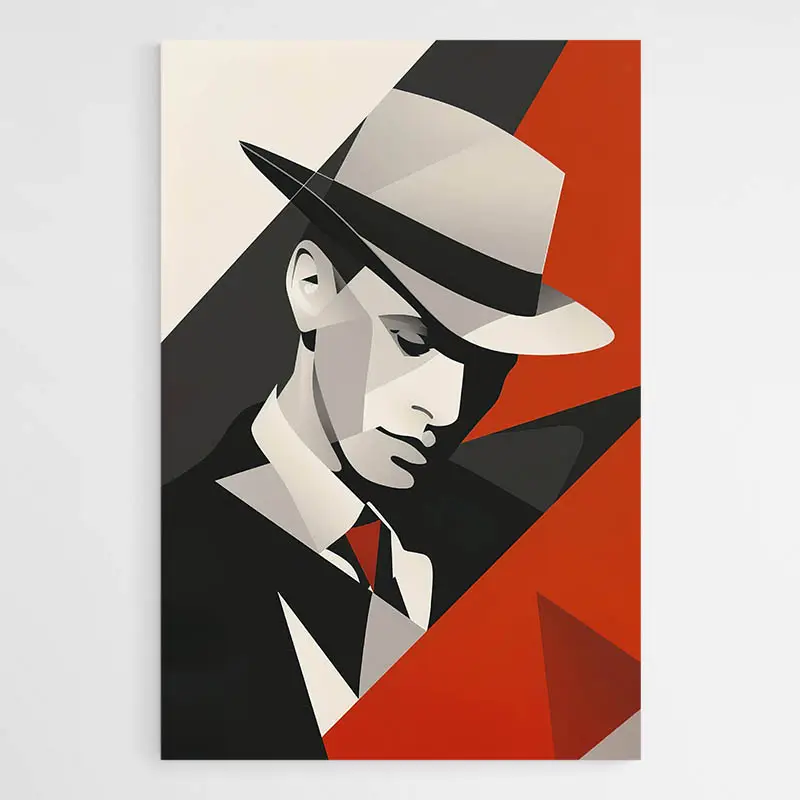 Le Tableau homme élégant cubisme plaira aux amateurs d'art géométrique et aux personnes qui aiment les lignes fortes. On ressent une élégance retenue. On sent aussi un contraste entre couleurs chaudes et froides. Ce travail s'adresse à ceux qui veulent un point d'appui visuel, sans surcharge. Il crée une atmosphère calme, moderne et réfléchie.