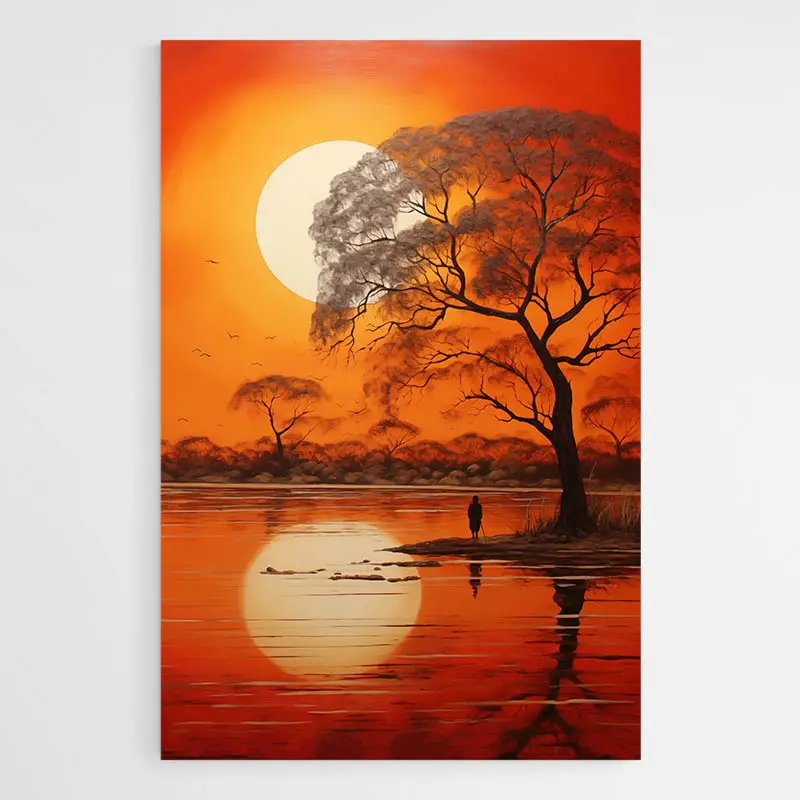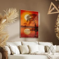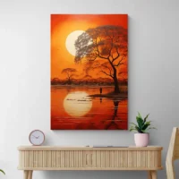 Placez cette toile au-dessus d’un meuble en bois clair, près d’une plante verte, ou avec des coussins dans des tons ocre et terre cuite. Sur un mur clair, les contrastes ressortent mieux. Pour continuer l’univers, découvrez nos tableaux africains ou nos tableaux ethniques.