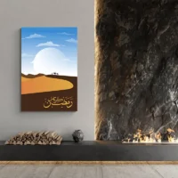 On ressent une ambiance sereine et posée, calme mais présente. Ce tableau plaira à qui aime les motifs symboliques, la calligraphie sobre et les couleurs riches. Il fonctionne bien pour une entrée, un salon ou un lieu de recueillement, où il installe une atmosphère douce, apaisante et solennelle.