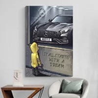 Tableau It All Starts With A Dream, une affiche douce et nocturne