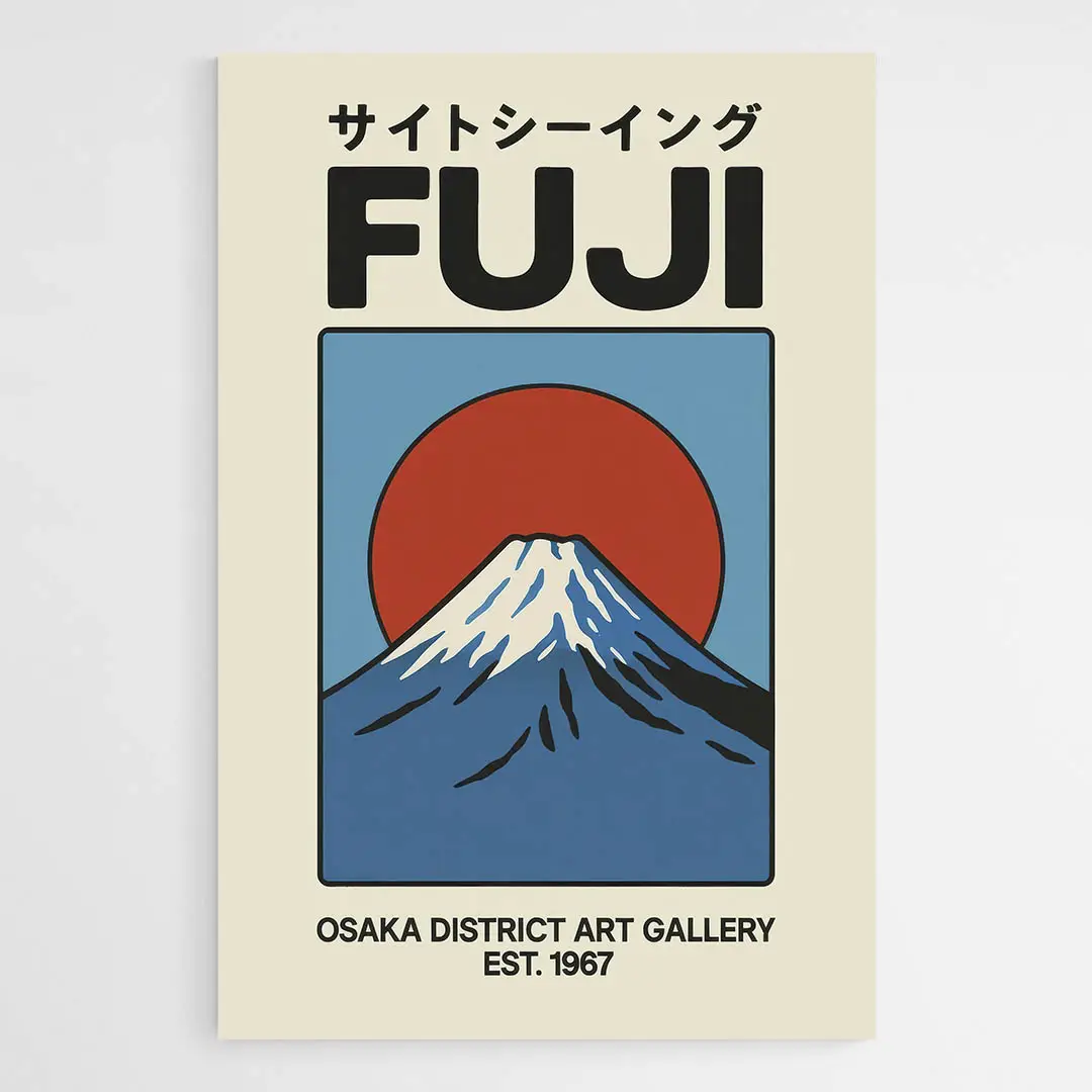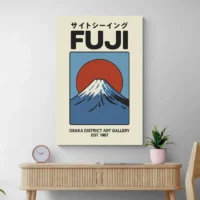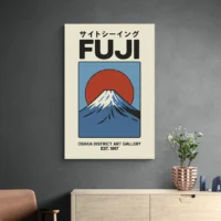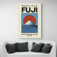 On ressent une atmosphère calme, presque méditative. Les couleurs limitées renforcent l'effet, le rouge discret apporte du caractère, la montagne impose une présence tranquille. Cette toile conviendra à qui aime l'esthétique japonaise, les paysages minimalistes, ou la déco qui respire. Elle habille un mur sans en faire trop.