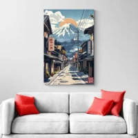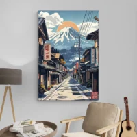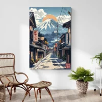 Accrochez-la sur un mur clair pour que les couleurs ressortent, ou au-dessus d'un meuble en bois naturel pour renforcer l'esprit asiatique. Associez-la à d'autres pièces épurées et à des éléments en bambou ou céramique. Pour explorer des styles similaires, découvrez nos tableaux japonais et nos tableaux paysage.