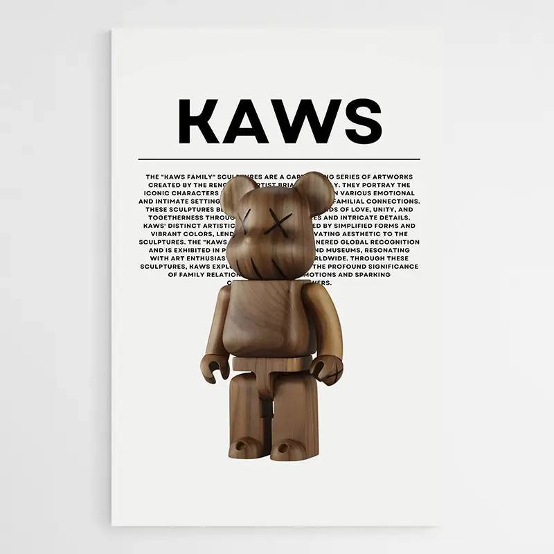 Tableau Kaws Bearbrick Bois, une silhouette graphique sur bois