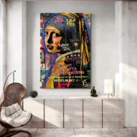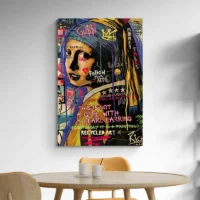 Sur un mur en béton ou un mur gris, les couleurs ressortent. Sur un mur blanc, le portrait devient plus lumineux. Associez cette affiche à d’autres pièces urbaines ou à des reproductions célèbres pour créer un contraste assumé. Découvrez aussi nos créations dans tableaux urbains ou nos reproductions.