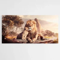 Ce Tableau Lion et Lionceau raconte une scène douce et sauvage à la fois. On voit un lion adulte et son lionceau, près l’un de l’autre, dans des tons dorés et sable. Le fond reste clair, avec des touches de brun et de crème. La crinière est dense, le regard posé et attentif.