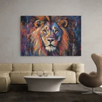 On l’imagine au-dessus d’un meuble en bois brut, sur un mur clair pour faire ressortir les ocres et bruns. Pour continuer l’ambiance, associez-le à d’autres tableaux d’animaux ou explorez notre sélection de tableaux lion.