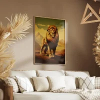 Tableau Lion Vintage, un portrait puissant et chaleureux