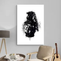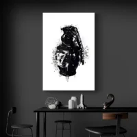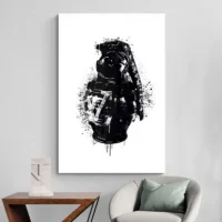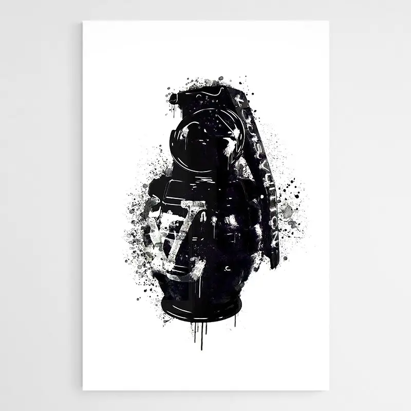 Accrochez cette toile au-dessus d’un meuble bas, dans une entrée ou un salon, pour en faire le centre d’attention. Associez-la à des tons neutres et quelques accessoires métalliques pour rappeler l’anneau de la grenade. Pour prolonger l’univers, découvrez nos catégories tableaux pop-art ou tableaux moderne.