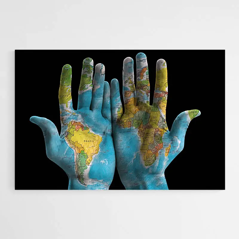 Tableau Main avec Carte du Monde, un motif qui invite au voyage