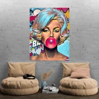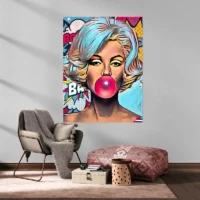 Accrochez-le au-dessus d’une console, d’une coiffeuse ou dans un salon pour lui donner de l’impact. Sur un mur clair, les couleurs ressortent; sur un mur foncé, le visage gagne en intensité. Associez-le à des cadres sobres ou à d’autres pièces rétro comme nos tableaux vintage ou des imprimés pop avec tableaux pop-art.