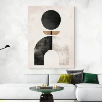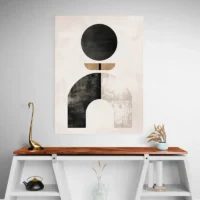 Accrochez-la à hauteur des yeux pour que la géométrie parle. Associez-la à un meuble en bois clair, des coussins beiges, et une lampe noire aux lignes simples. Pour un mur plus animé, regroupez-la avec de petites affiches graphiques. Pour voir d’autres propositions dans le même esprit, explorez nos tableaux minimalistes ou nos tableaux géométriques.
