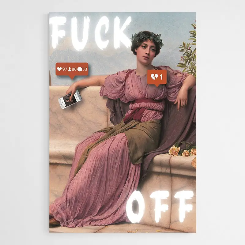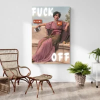 Ce Tableau Moderne Fuck Off affiche le texte "FUCK OFF" en lettres majuscules, nettes et sans fioritures. Le lettrage occupe la majeure partie de la surface. Le fond reste uni, simple. Le contraste entre texte et fond saute aux yeux. Le centrage du message rend la lecture immédiate. On sourit, on réagit, on ne passe pas à côté.