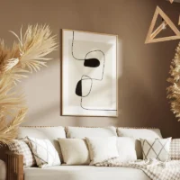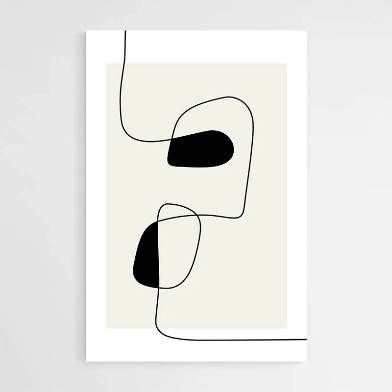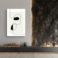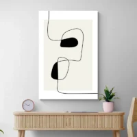 Ce Tableau Moderne Ligne attire le regard par sa simplicité. On voit des lignes noires fines qui se croisent et se prolongent. On distingue une grande forme ovale beige et un fond blanc cassé. Une petite tache ocre apporte un point de couleur. Le rendu reste sobre, net, très contemporain. On ressent calme et ordre, simple, simple. Les traits semblent tracés d’un seul geste, parfois interrompus, parfois prolongés.