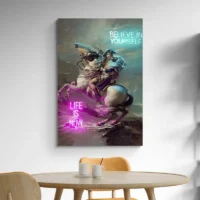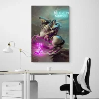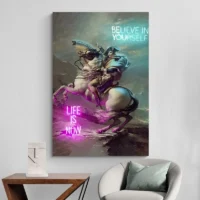 Accrochez cette toile au-dessus d'un meuble sombre pour renforcer le contraste, ou sur un mur clair pour laisser respirer les couleurs. Associez-la à des cadres sobres et des textures mates pour calmer l'ensemble. Découvrez aussi nos sélections de tableaux modernes et de tableaux pop art pour compléter la déco.