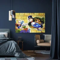 On retrouve une palette contrastée, des lignes bien marquées et un rendu qui évoque la ville, l’économie du jeu, l’ambition. Ce tableau séduira forcément le fan de jeux de société, le collectionneur ou la personne qui aime les images graphiques et structurées. Il crée une atmosphère vive et concentrée, très assumée.