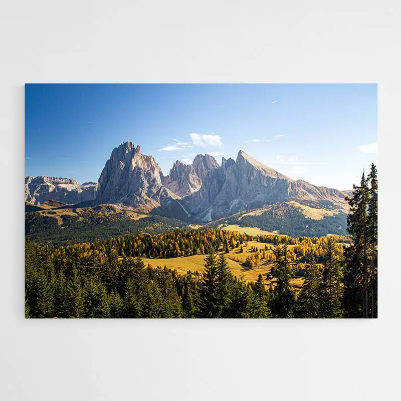 On accroche cette toile sur un mur clair pour amplifier la lumière, ou sur un mur beige chaud pour accentuer les contrastes. Associez-la à du bois naturel et des textiles écru. Pour compléter, retrouvez nos tableaux paysage ou nos tableaux montagne.