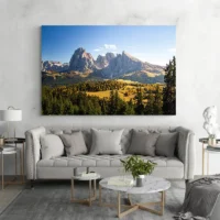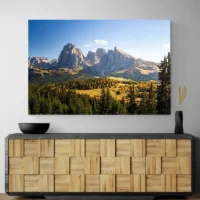 Tableau Montagne Alpes donne une sensation d'air frais et de calme. On sent la profondeur entre la vallée et les sommets. Ce visuel plaira aux amateurs de paysage, aux randonneurs ou à ceux qui cherchent une déco apaisante. Les tons dominants, bleu et blanc, rendent l'ensemble serein, doux, reposant. On a envie de rester et de regarder encore.