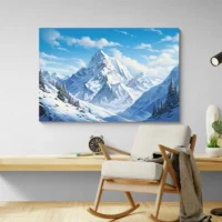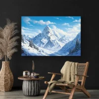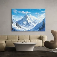 Le visuel reste simple et fort. On trouve peu d'éléments superflus, juste la montagne, la neige et le ciel. Cette toile plaît à qui aime les paysages, les lignes claires et les ambiances hivernales. Elle évoque le silence, la fraîcheur et la grandeur des sommets. On ressent tout de suite la pureté de l'air, la lumière nette, le calme.