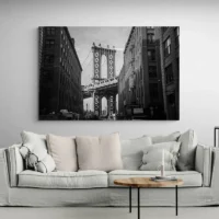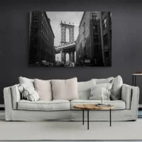 Accrochez cette toile sur un mur clair pour amplifier le contraste, ou sur un mur sombre pour une atmosphère feutrée. Associez-la à des cadres fins et des objets métal. Pour rester dans le même esprit, découvrez nos tableaux New York et nos tableaux noir et blanc.