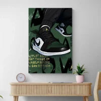 Tableau Nike Air Jordan Kaki, une basket iconique en gros plan
