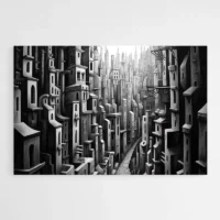 Ce Tableau noir et blanc moderne frappe par sa simplicité. On voit un fond blanc pur, des formes noires contrastées et des lignes nettes qui structurent l’image. L’équilibre entre les pleins et les vides saute aux yeux, on sent de la rigueur et de la clarté. Le rendu garde pourtant une certaine douceur grâce à des gris intermédiaires et à des bords légèrement irréguliers, ce qui donne du caractère, un peu de mouvement.