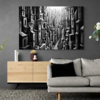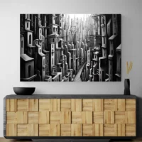 On pense à ceux qui aiment les intérieurs sobres et organisés. Le contraste marqué et les formes géométriques plairont aux amateurs d’espace ordonné, aux bureaux, aux salons calmes. L’effet recherché : apaiser et recentrer le regard. Il souligne la verticalité ou l’horizontalité d’un mur sans l’envahir.