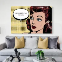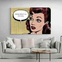 On retrouve les codes du pop art: aplats de couleur, trame visible, lignes nettes. Ce tableau plaît à qui aime la couleur, le graphique et l’effet rétro. Il apporte du caractère, du sourire et de l’attention sur un mur. Il fonctionne bien pour une pièce jeune ou pour réveiller un couloir, un salon, un coin bureau.