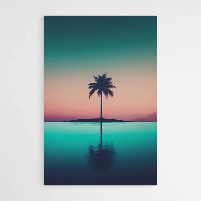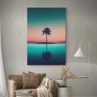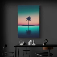Le Tableau Palmier Nuit joue sur le clair-obscur et la simplicité des formes. On aimera si on aime les paysages nocturnes, les lignes graphiques et les compositions épurées. On sent une mélancolie légère, on sent aussi une grande douceur. Le rendu conserve des contours nets, silhouette précise et lisible.