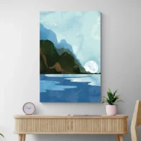 Accrochez cette toile au-dessus d'un canapé clair ou d'une commode en bois. Associez-la à coussins beiges et à objets en céramique pour renforcer l'ambiance naturelle. Il fonctionne bien dans un salon, une chambre ou un bureau. Il apporte calme et légèreté, il ouvre l'espace.