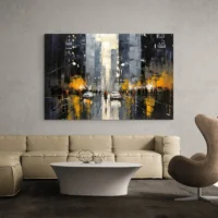 On ressent une ambiance sereine, presque méditative. Le style reste épuré, avec des formes simples et des contrastes modérés. Cette toile plaira aux personnes qui aiment une déco sobre mais chaleureuse, aux amateurs de paysages stylisés et à ceux qui cherchent un point focal discret. L'effet recherché : installer une atmosphère tranquille sans en faire trop.