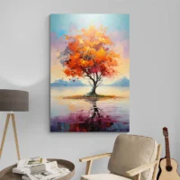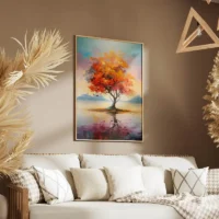 Tableau Peinture Arbre Orange, une scène chaleureuse