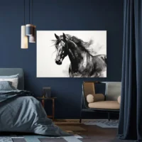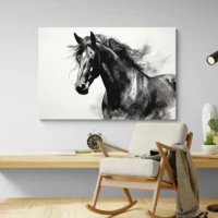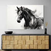 Tableau Peinture Cheval Noir et Blanc, une présence saisissante