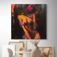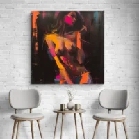 Tableau peinture femme nue, sensualité douce et formes peintes