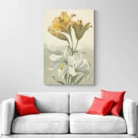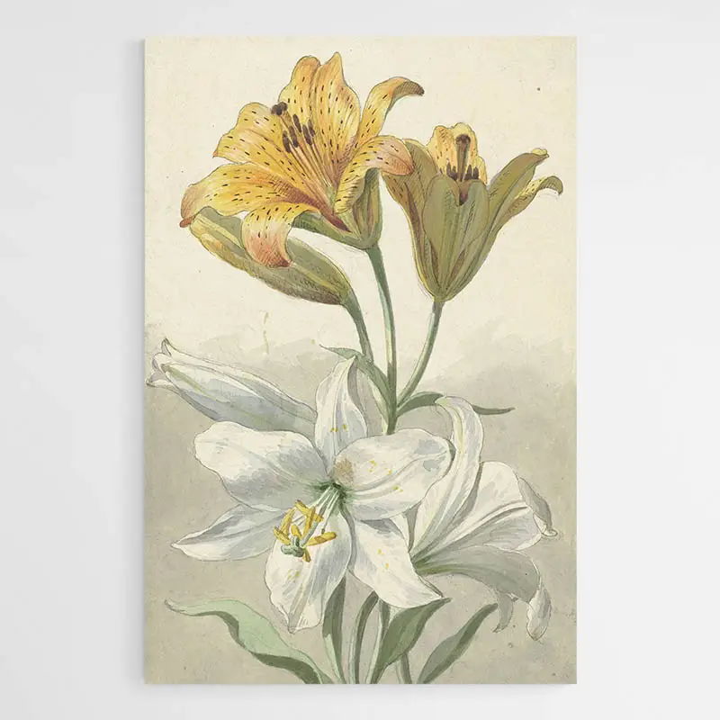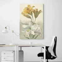 Sur un mur clair, les tons dorés ressortent. Sur un mur terre, l’ambiance devient enveloppante. Associez avec des cadres simples, du bois, du lin. Pour d’autres choix proches, regardez nos tableaux fleurs ou nos tableaux modernes.