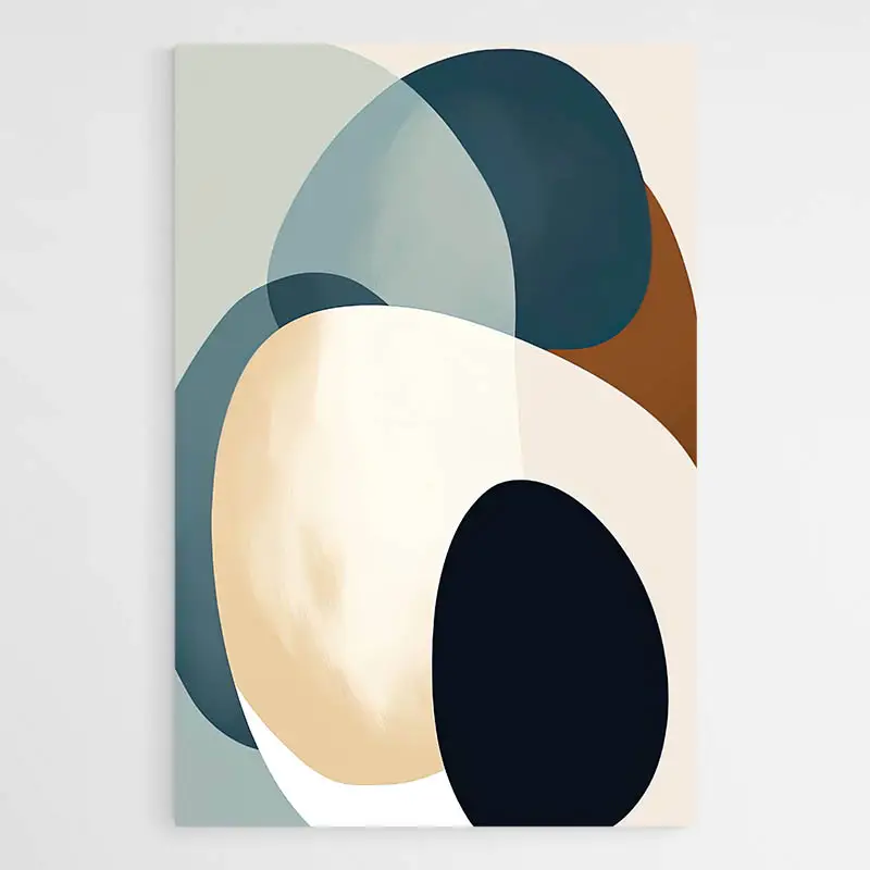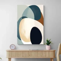 Accrochez la toile sur un mur blanc ou sable pour que les tons ressortent. Associez-la à des meubles en bois clair et quelques objets noirs pour créer un fil conducteur. Pour prolonger l’univers, regardez nos tableaux géométriques ou nos tableaux modernes.