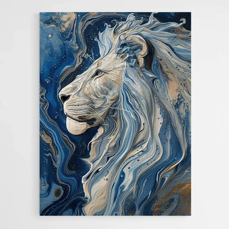 Tableau peinture lion bleu, une présence majestueuse et graphique