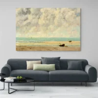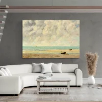 Sur un mur clair au-dessus d'un canapé, il impose une atmosphère sereine. Associez-le à coussins beiges, plaids écrus et mobilier en bois clair. Pour prolonger le thème, regardez nos tableaux mer ou nos tableaux moderne.