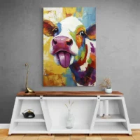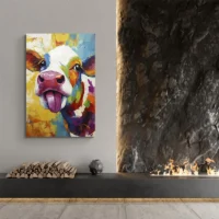 Accrochez-le dans une cuisine, une entrée ou une chambre pour donner du caractère. Sur un mur clair, les taches noires tranchent; sur un mur chaud, l’ensemble devient plus enveloppant. Pour compléter, explorez nos tableaux d’animaux ou nos tableaux vache.