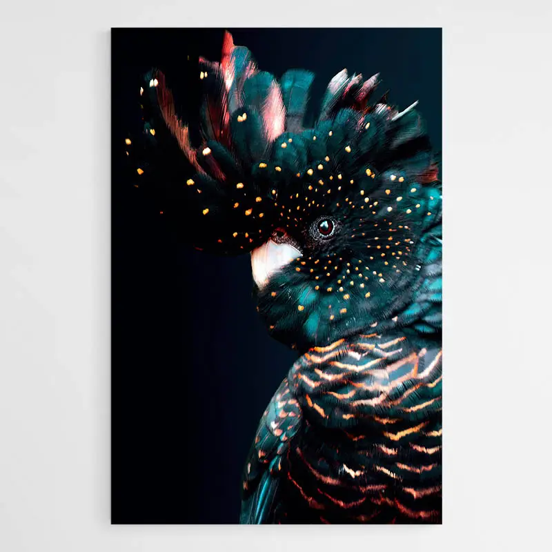 Tableau Perroquet Noir, un oiseau graphique et contrasté
