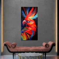 La toile donne une impression de proximité. On ressent la force des couleurs, la vitalité et un caractère presque vivant. La présence du perroquet donne de l’énergie au lieu, sans être agressive. Ce tableau séduira les passionnés d’ornithologie, les personnes qui aiment la nature et aussi ceux qui veulent une déco animée par une touche colorée et naturelle.