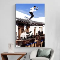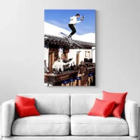 On ressent le froid, la vitesse, l'espace. Ce tableau plaît à qui aime la montagne, les sports d'hiver, la photographie nette et réaliste. Il donne une sensation d'air pur, d'espace ouvert, d'instant capté. Il fonctionne bien pour un intérieur qui cherche une touche naturelle, directe, sans fioriture, mais avec du mouvement.