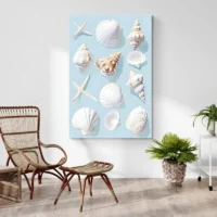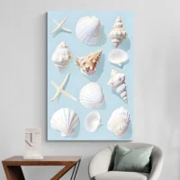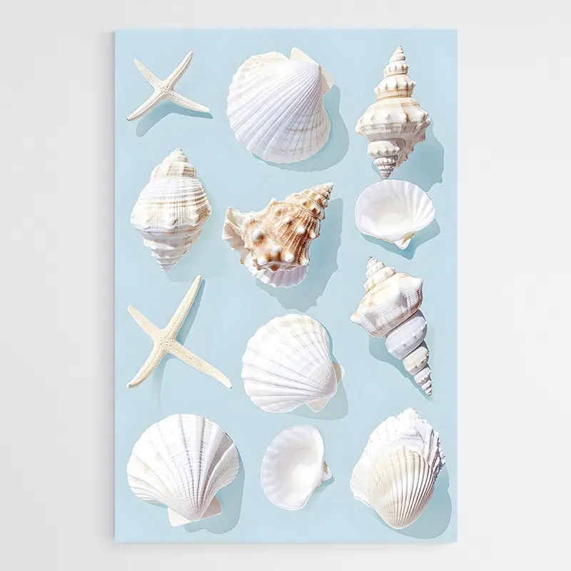 Cette toile joue la simplicité: gros plan sur les coquillages, contraste doux entre sable et mer, reflets subtils sur les coquilles. Elle plaira à qui aime les scènes naturelles, aux amateurs de motifs marins, à ceux qui cherchent une ambiance douce. On vise un effet: détente, lente respiration, retour aux vacances, calme retrouvé.