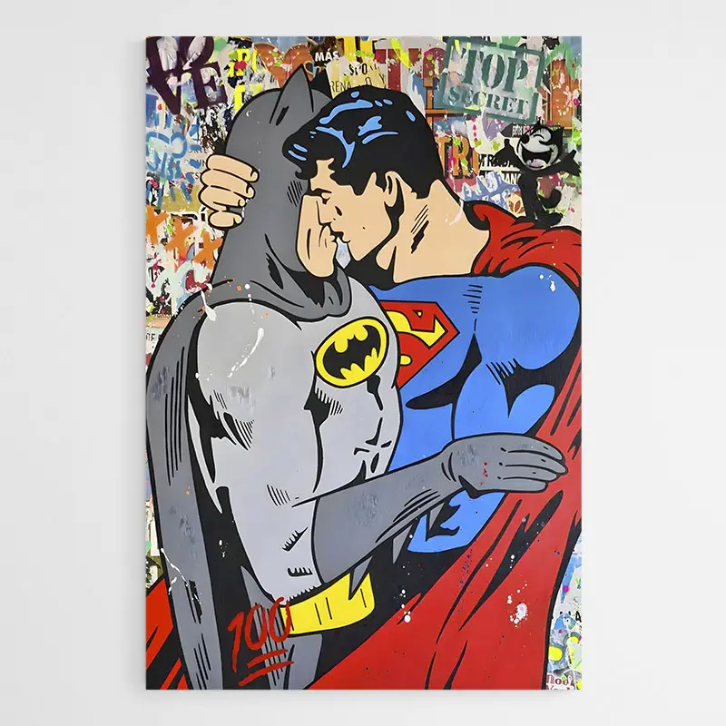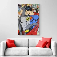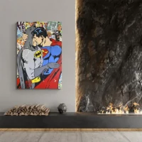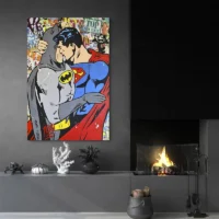 On ressent immédiatement l’énergie, l’opposition des deux figures et la dynamique du contraste couleur. Ce tableau séduira les amateurs de bande dessinée, les fans de super-héros, et ceux qui aiment une déco vive. Il donne du mouvement, il capte le regard, il crée une ambiance vive mais pas agressive.