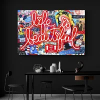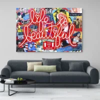 Sur un mur clair, les couleurs ressortent avec force. Dans une pièce sobre, ce tableau devient le point focal. Associez-le à cadres noirs fins et à objets aux teintes primaires pour garder l’esprit. Pour prolonger l’ensemble, découvrez aussi nos tableaux pop art ou nos tableaux moderne.