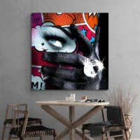 Sur un mur clair, les couleurs ressortent. Sur un mur sombre, l’ensemble devient plus intense. Accrochez-la au-dessus d’un canapé ou d’un bureau, associez-la à cadres noirs et à textiles unis. Pour aller plus loin, découvrez nos tableaux pop art ou nos tableaux moderne.