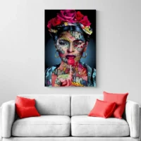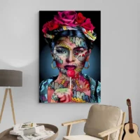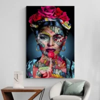 Le rendu rappelle l’esthétique pop art: couleurs saturées, contrastes forts, lignes graphiques. On ressent immédiatement de l’énergie, de la force, un côté joyeux et percutant. Ce tableau plaira aux amateurs de portraits iconiques et aux fans de Frida, mais aussi à ceux qui aiment les murs qui parlent, qui racontent quelque chose.