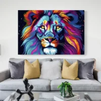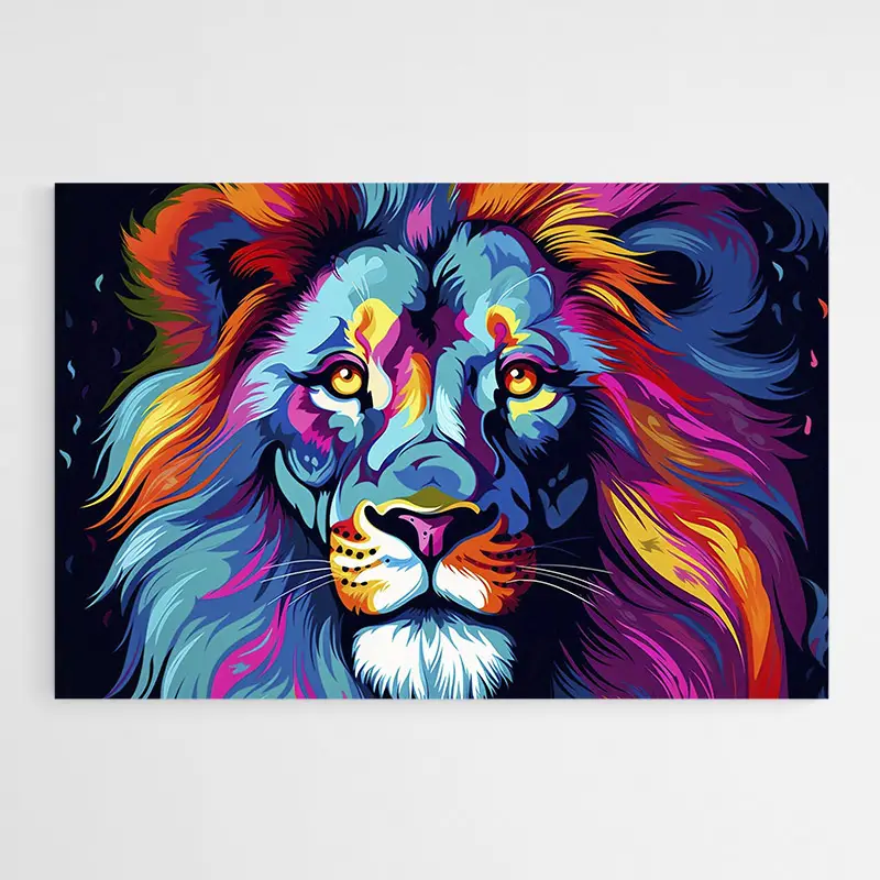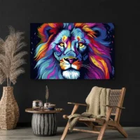 Sur un mur blanc, les couleurs ressortent pleinement. Sur un mur sombre, l’ambiance devient plus contrastée et plus théâtrale. Associez-le à un cadre noir ou bois clair et évitez les motifs trop chargés autour. Découvrez aussi nos tableaux pop art ou d’autres tableaux lion.