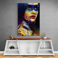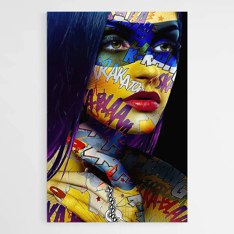 Sur un mur blanc les couleurs ressortent immédiatement, sur un mur foncé l’ambiance devient plus théâtrale. On peut associer à des coussins unis ou un meuble simple pour ne pas surcharger. Pour aller plus loin, découvrez nos tableaux pop art ou nos tableaux modernes.